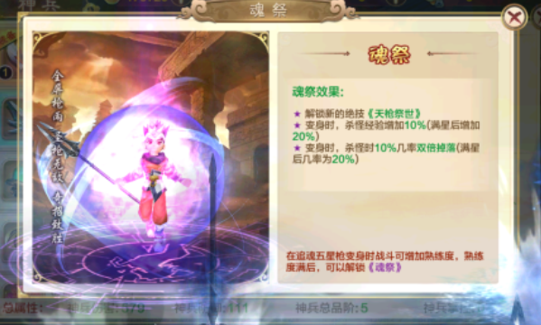熟练度后的特殊作用既有经历和掉宝加成还会解锁一招绝技天枪祭世